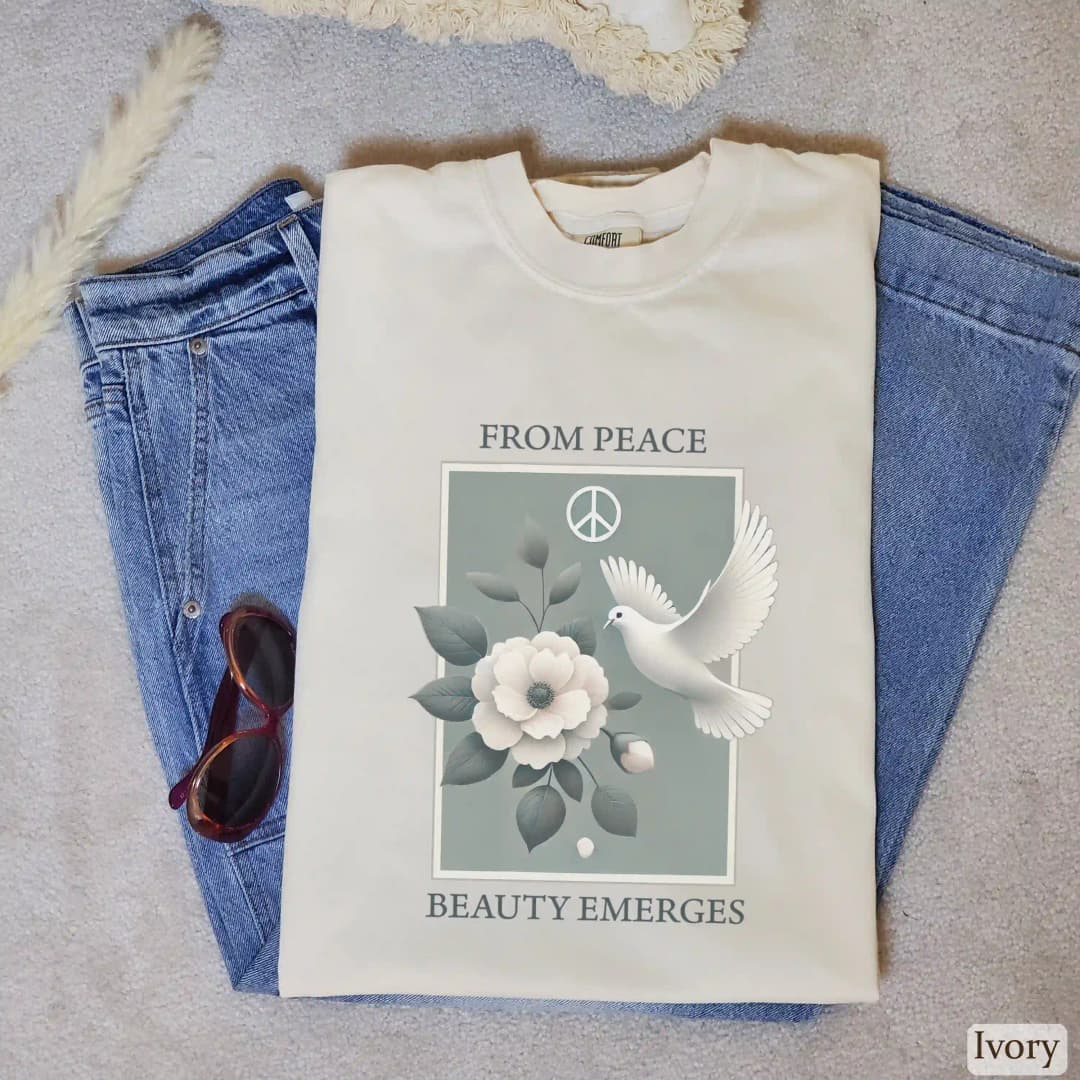Spread a positive message with this beautifully designed Comfort Colors T-shirt. Featuring a peaceful dove, soft florals, and a peace sign, it’s perfect for those who believe in love, hope, and unity.