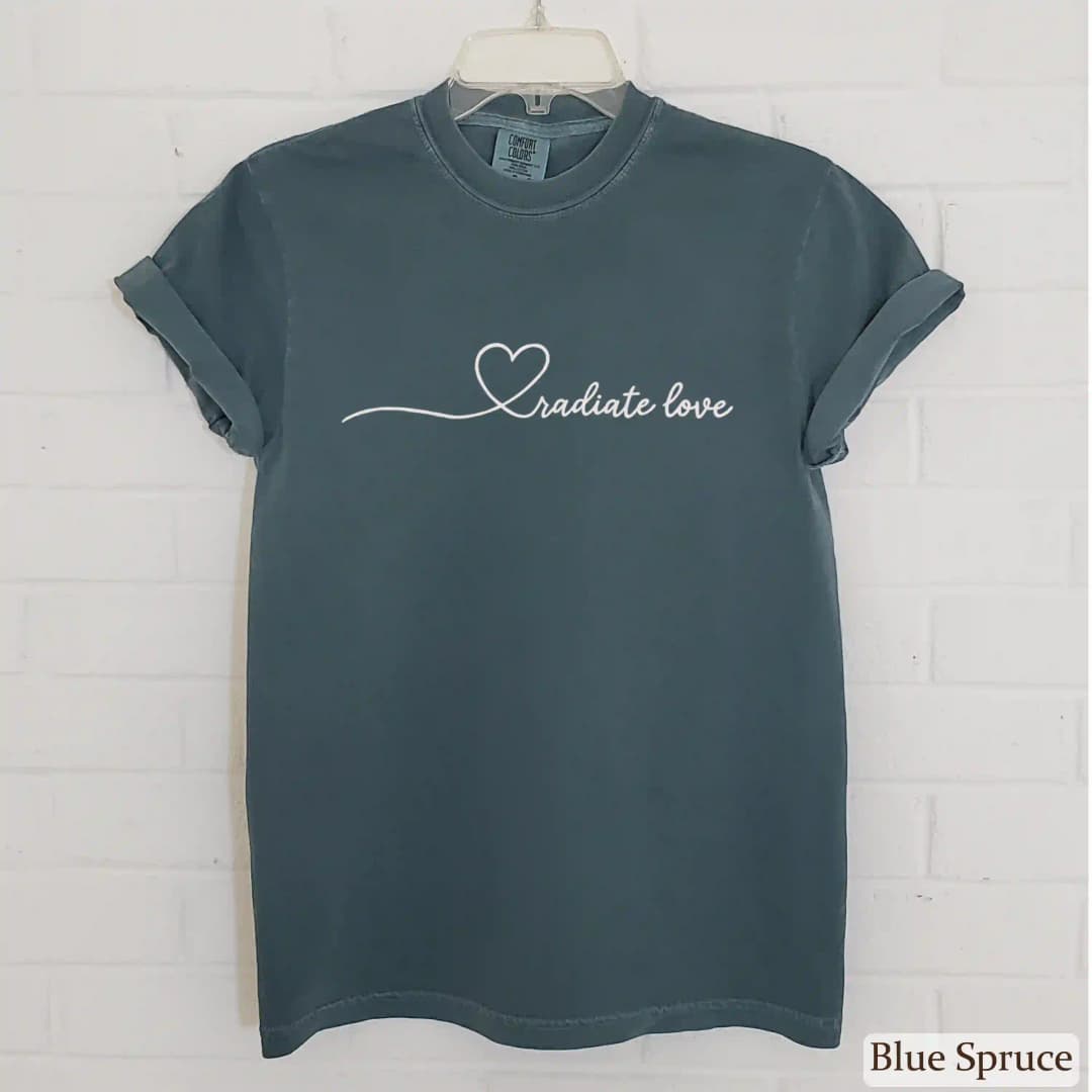 Share positive energy with the Radiate Love Comfort Colors T-Shirt. This tee is a gentle reminder to spread love and kindness with every step you take.
